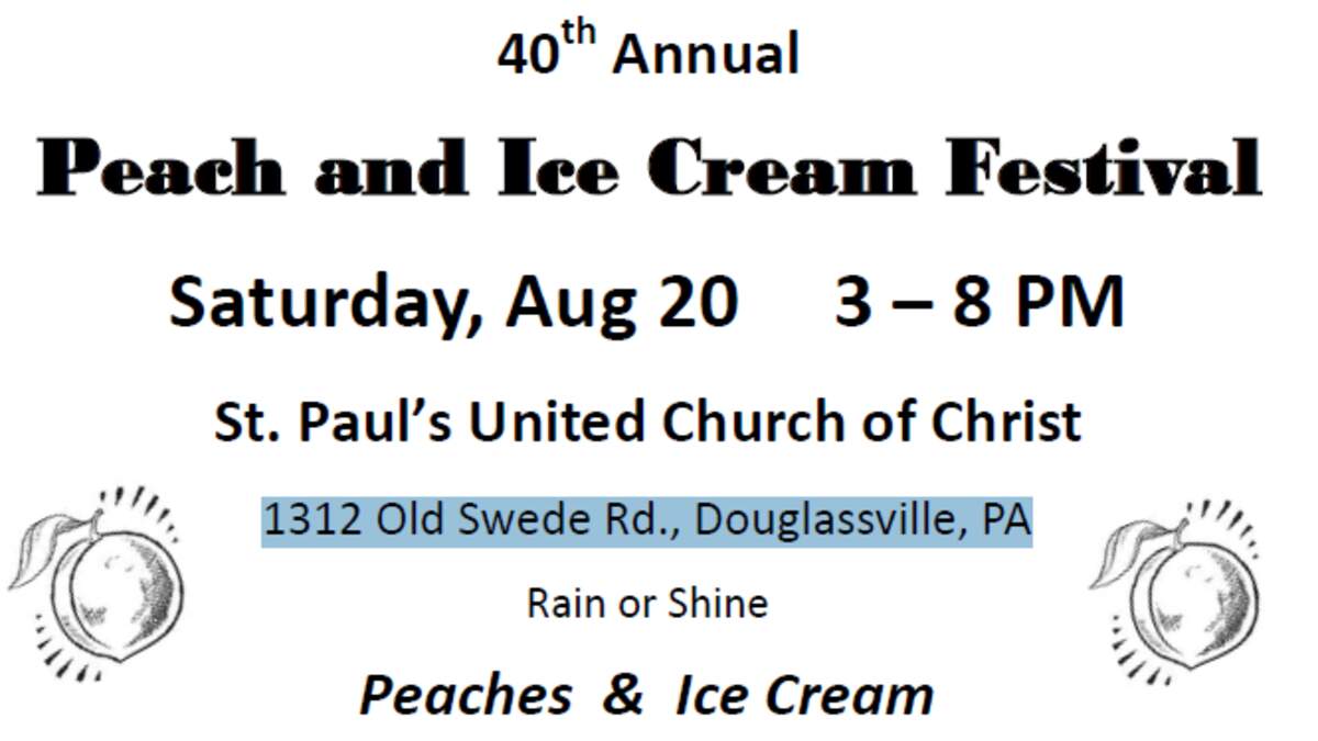 It's the 40th Annual St. Paul's UCC Amityville Peaches and Ice Cream Festival! Come out and enjoy peaches and ice cream, peach cobbler, pies, cake, and more! Plus there will be variety of food, games, and live entertainment! Yard Sale starts at 8am!